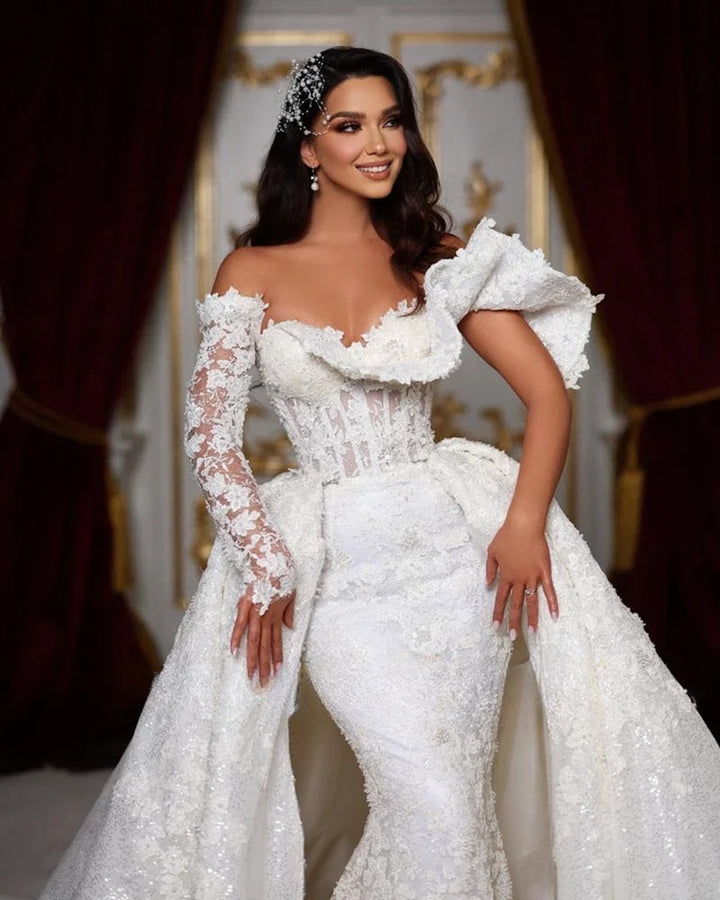 Chaque détail, des broderies délicates aux tissus luxueux, est pensé pour vous offrir une allure royale et inoubliable. Idéales pour les mariées en quête d'une tenue alliant glamour et romantisme, nos robes sirène princesse incarnent la fusion parfaite entre féminité et féerie.