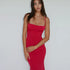 Cette merveilleuse robe allie élégance et confort grâce à une coupe ajustée qui épouse parfaitement votre silhouette. L'encolure drapée et les fines bretelles ajoutent une touche de raffinement, tandis que la fente subtile au niveau de la jambe permet une liberté de mouvement.