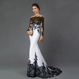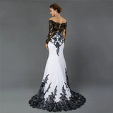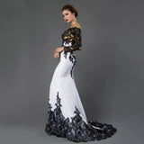 Robe de soirée sirène noir & blanc en dentelle, chic et glamour